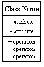 Class with attributes and behaviors annotated with visibility |