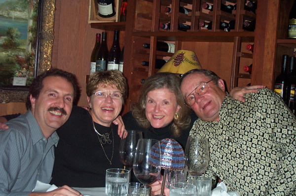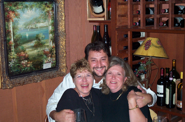 Saturday October 26: Nancy with Anne Johnson and Nicola Gilardi. The purpose of our trip west was to celebrate Anne's upcoming marriage to Burl Brown. We met for dinner at Gilardi's, in the carriage house behind the greystone building on E. Walnut St. Nancy and I were early (pre-Brad Pitt) diners there.