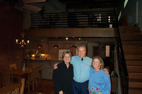 Saturday October 26: Nancy with Carol and Jim Murrow. Carol was in Nancy's first class when she taught at Webster, and also sold Nancy her Mercedes convertible. They are standing in the living room of Carol and Jim's new loft downtown. They bought the building, and renovated the first floor for retail space (Maria's).